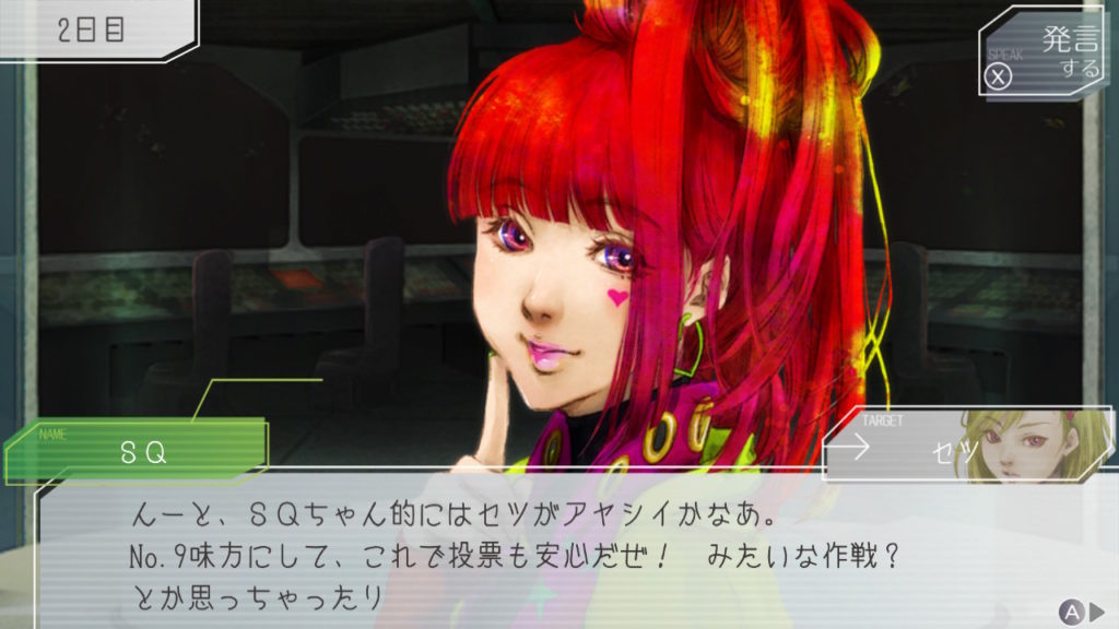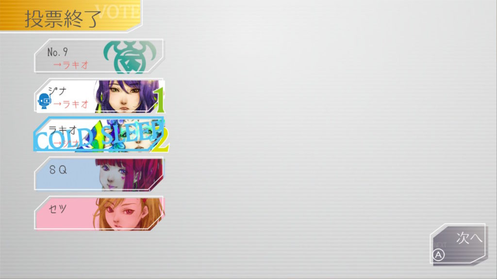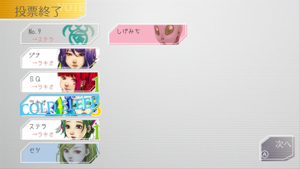 そんなSQちゃんの発言からラキオが「そんなことも知らないなんてSQ怪しいンだけど?」という流れになり、投票がSQちゃんに集中する羽目に。私はよくわからなくて適当に入れてます
