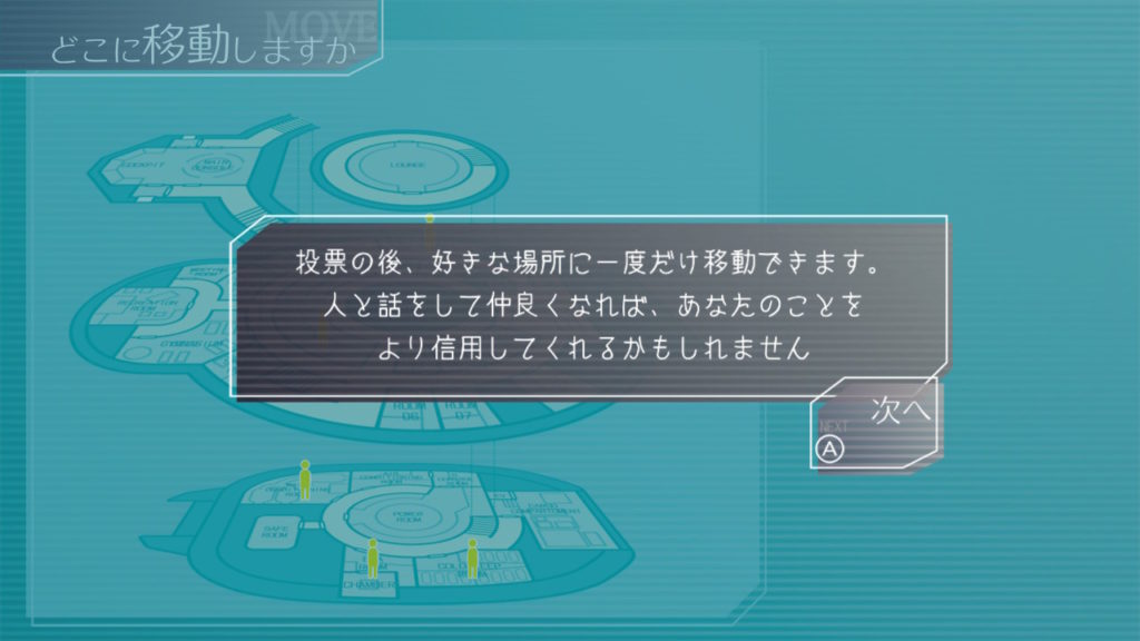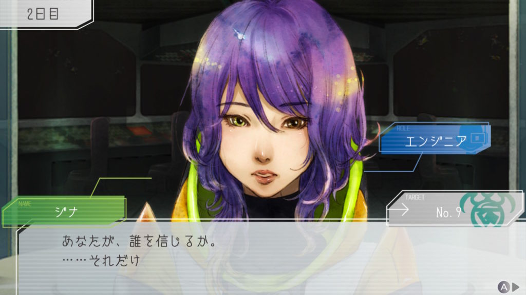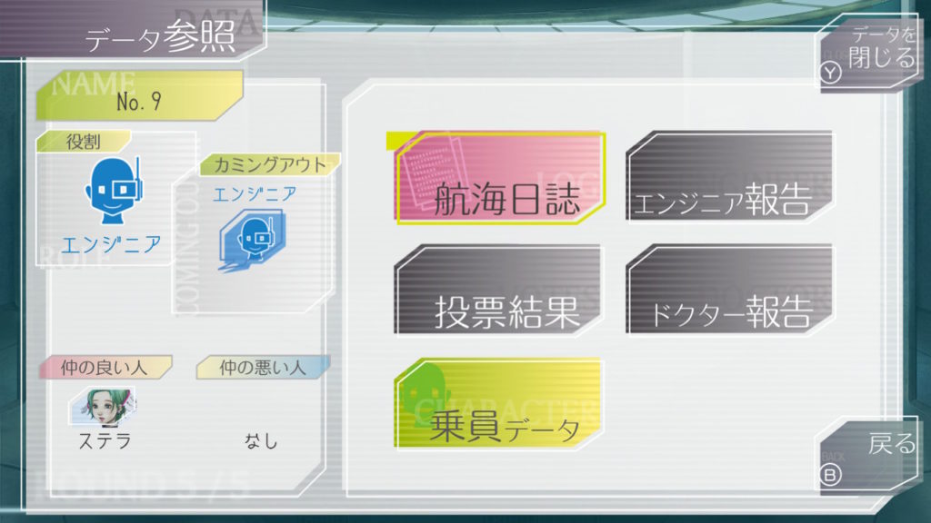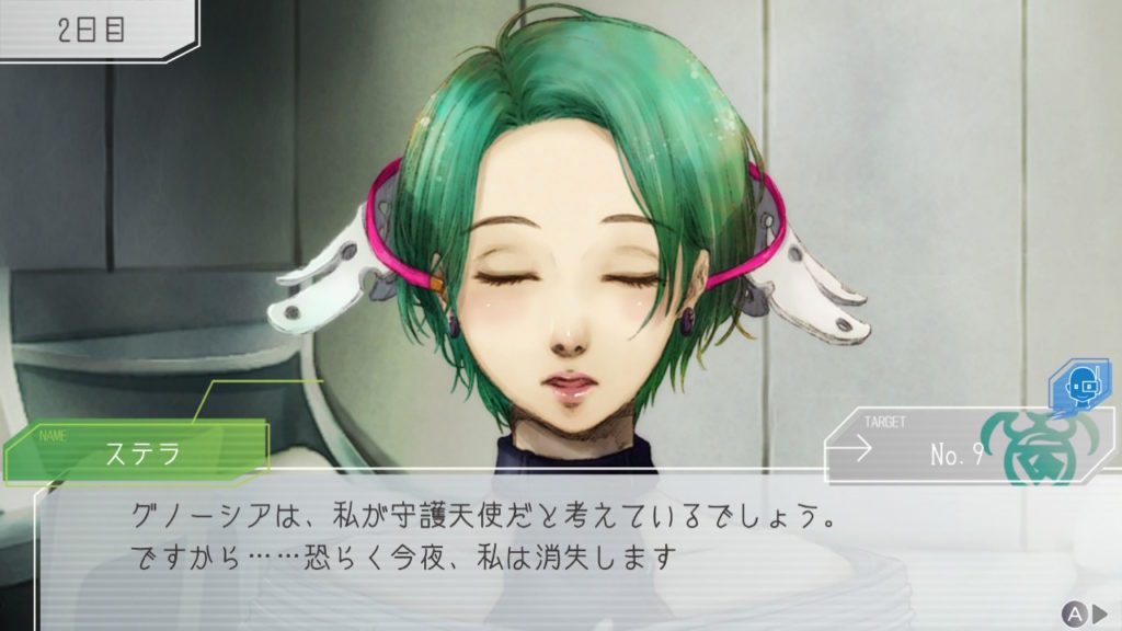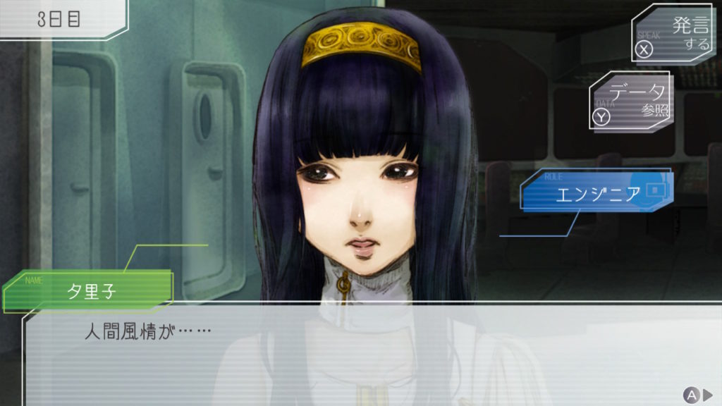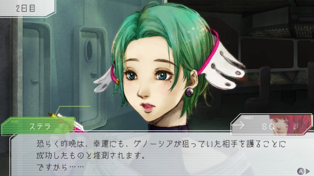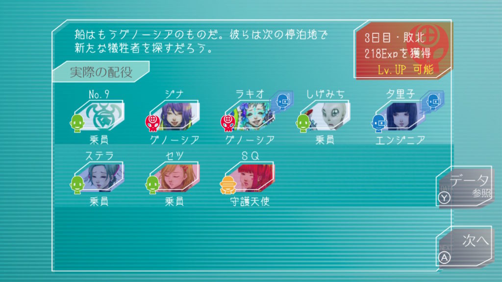 昨晩はセツが消失し、主人公・ジナ・ラキオの3人で話し合い。ジナちゃんがエンジニア(空間転移の度に誰がグノーシアか調べることができる役職)をカミングアウトしてラキオがグノーシアであると報告していた。乗員データが汚染されている可能性があり、エンジニア権限との紐づけが困難な状況らしく、ジナちゃんがエンジニアであるという証明はできないとのこと。