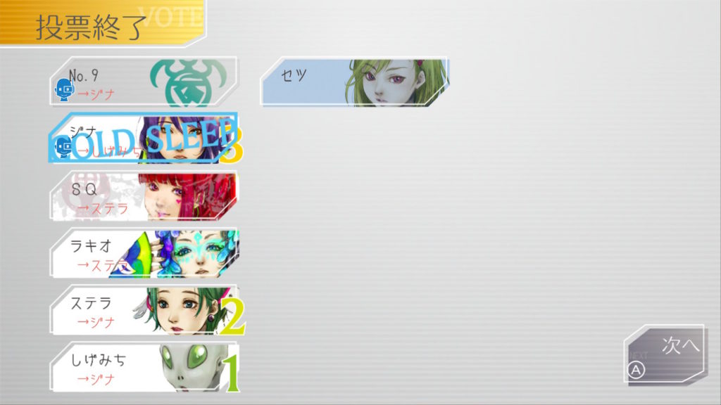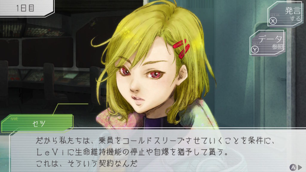 初日はセツがコールドスリープすることに。議論を先導してくれるから残っててほしいんだけどなぁ