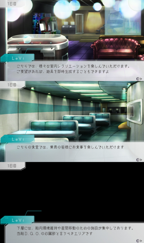 投票終了後は船の散策をすることに。どの場所でもLeViとのやりとりが「ウワ~~SFやってるな~~!!」って感じがしてテンション上がった。食とか娯楽から世界観が見えてくるのめちゃくちゃ好きなんだわ