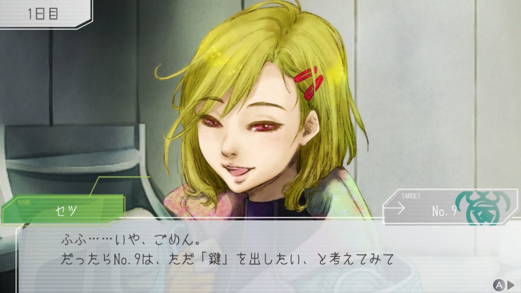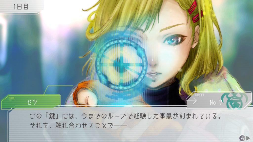 ループ始点でセツと合流!情報交換のため鍵を出してと言われたけど出し方がわからないので教えてもらっている図