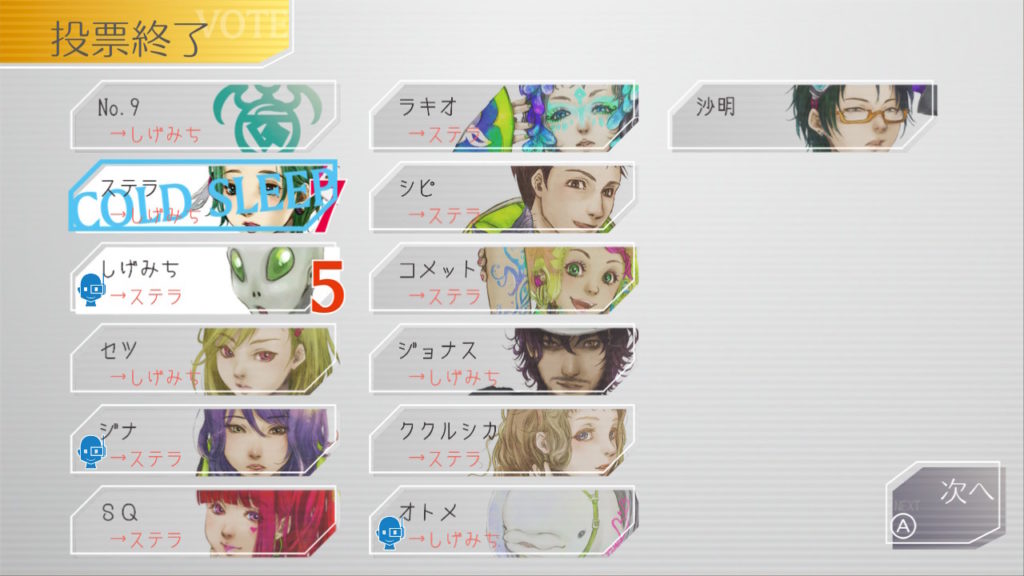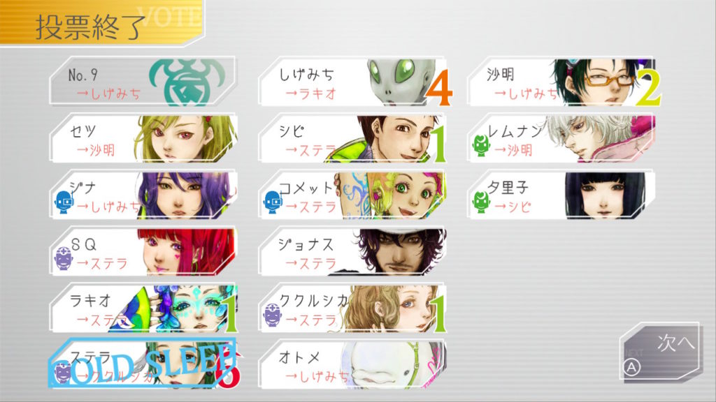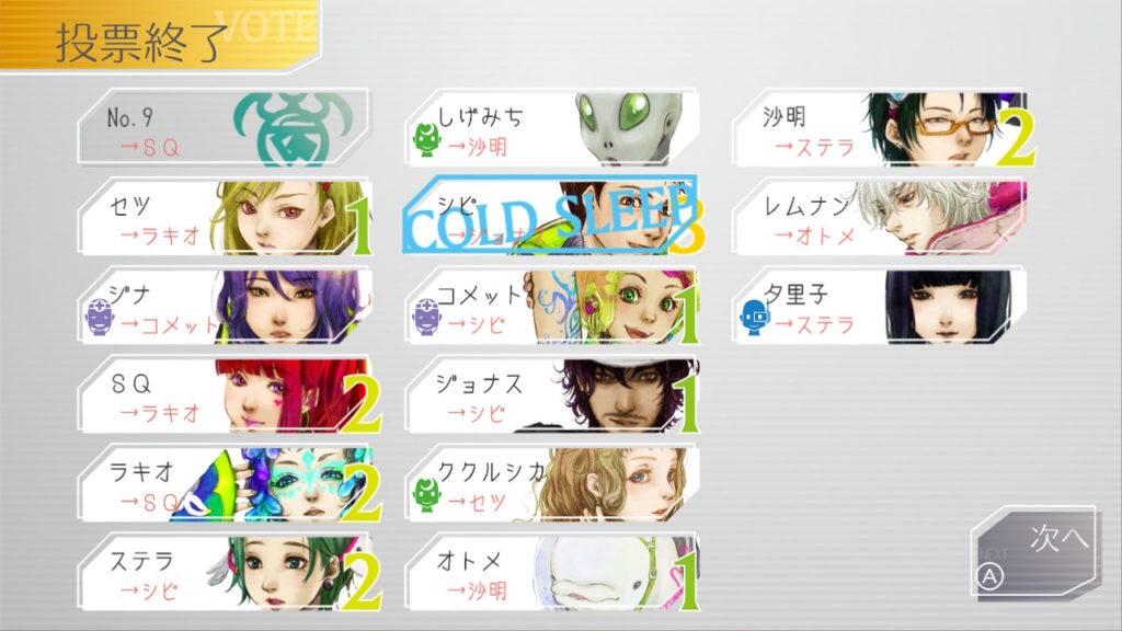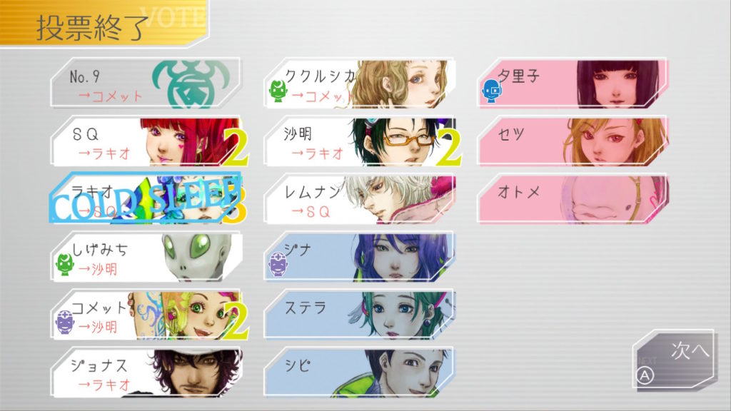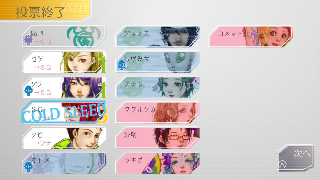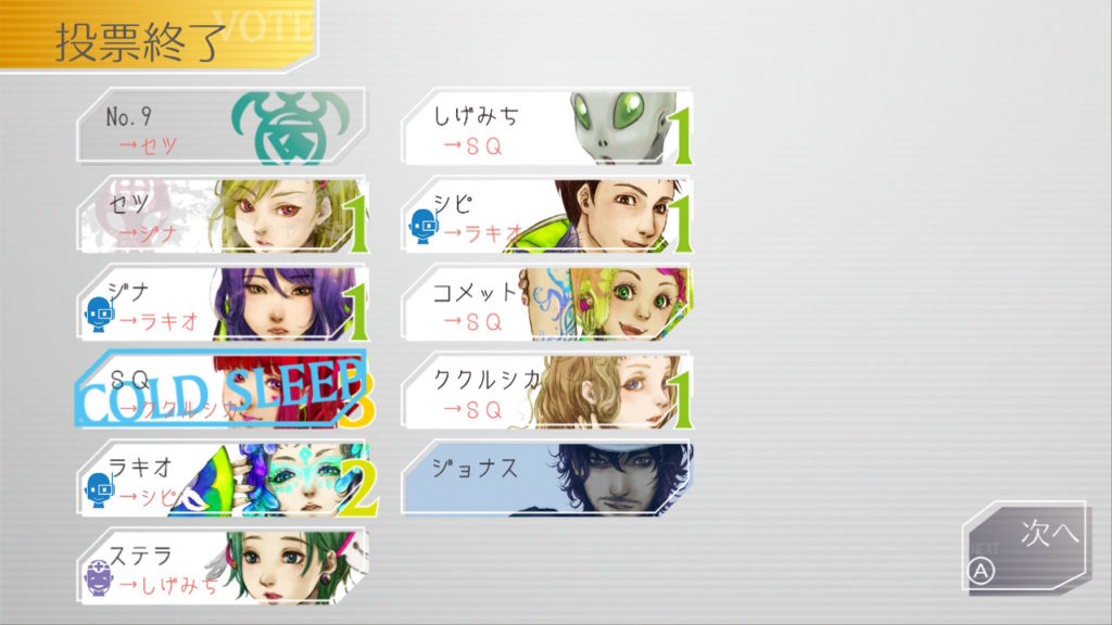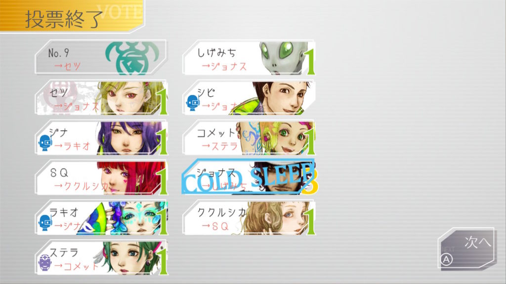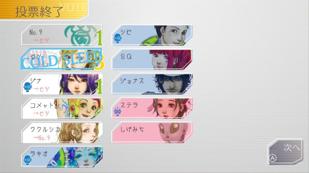 でもコメットちゃんもセツを疑っているのでNo.9、ジナ、コメットで票を固めればコールドスリープできそうだな