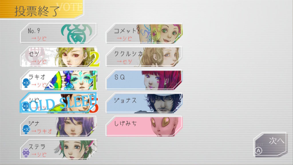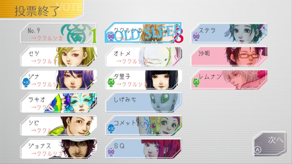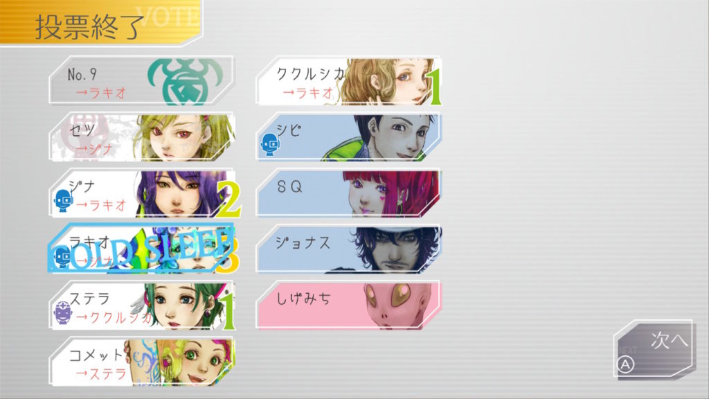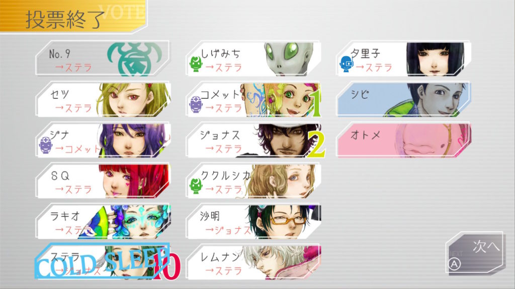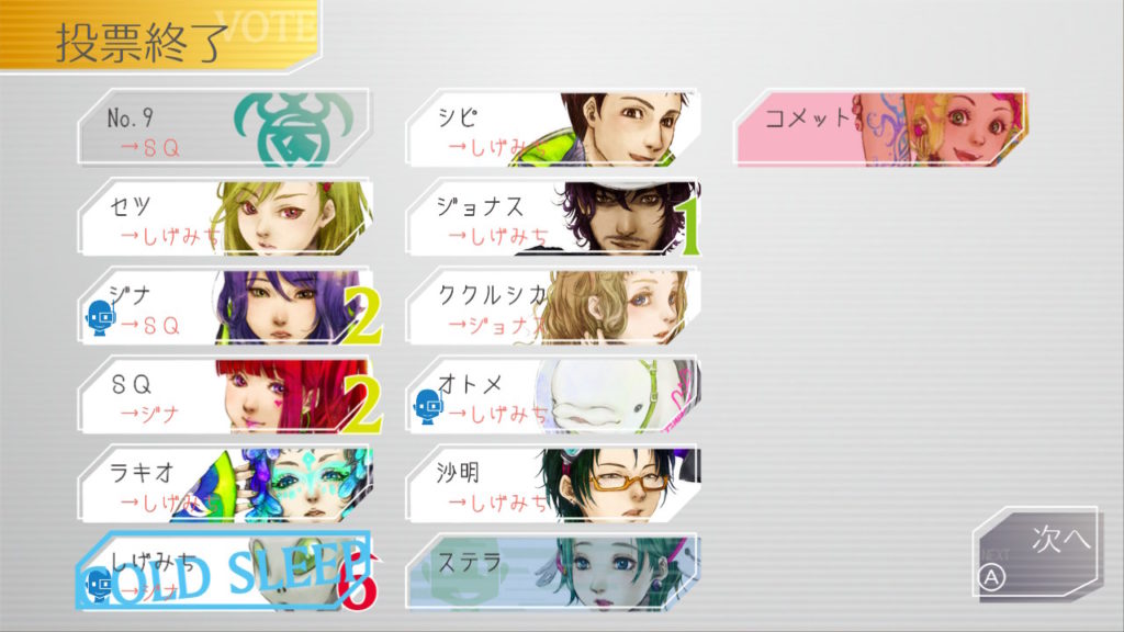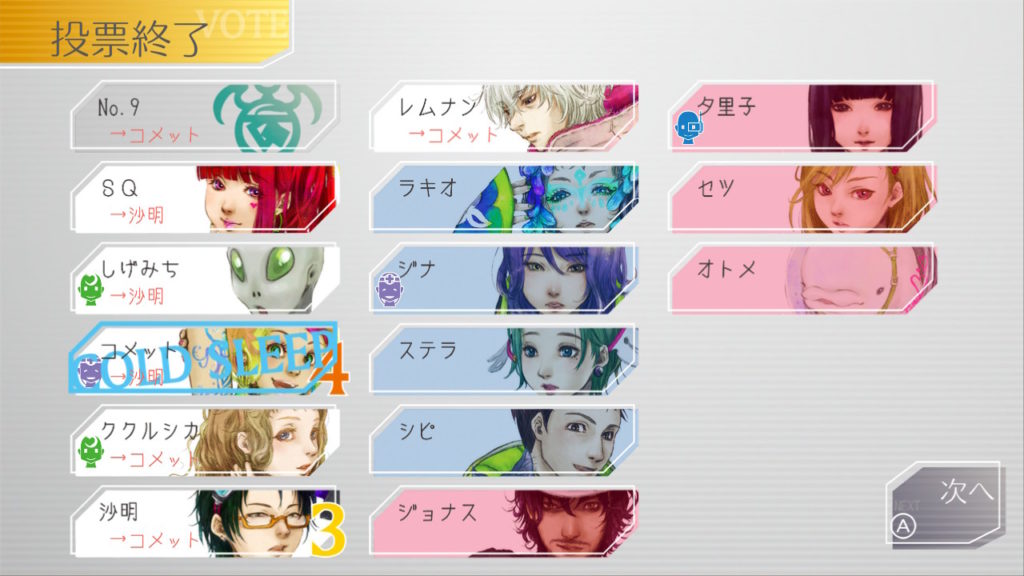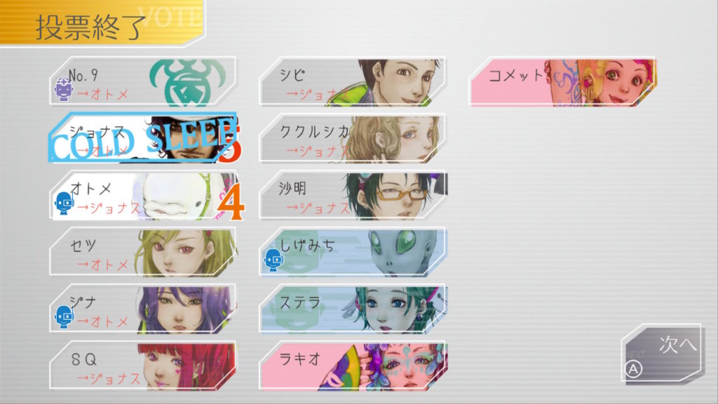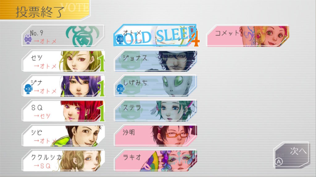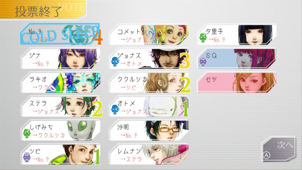 でもコメットちゃんもセツを疑っているのでNo.9、ジナ、コメットで票を固めればコールドスリープできそうだな