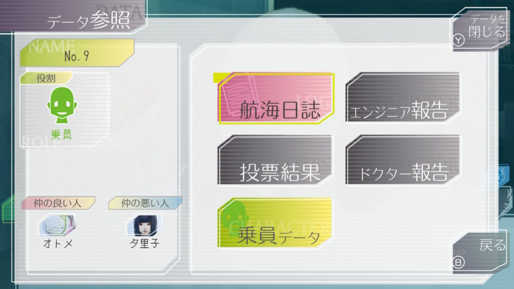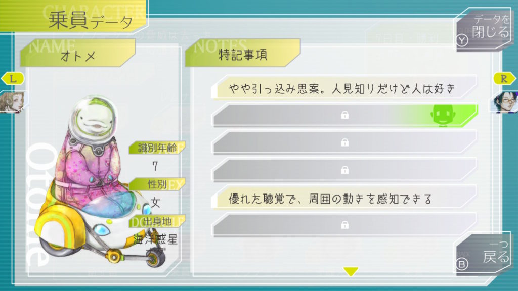 オトメちゃんの特記事項が開いた!こうやってループを重ねて乗員のことを知っていくの良いシステムだな